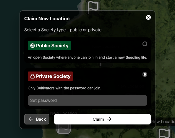Remember to share your password securely with friends you'd like to join. Anyone with the password can enter your society, so only share it with trusted players.